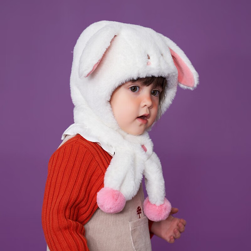 kocotree kk树 宝宝护耳一体围巾帽,通过SGS检测,严选面料,抑菌认证,安全有保障。双面可带,耳朵处小洞可以任意翻转。帽子插片设计防风又保暖,高克重法兰绒面料,软糯亲肤保嗳舒适,可爱萌萌哒。