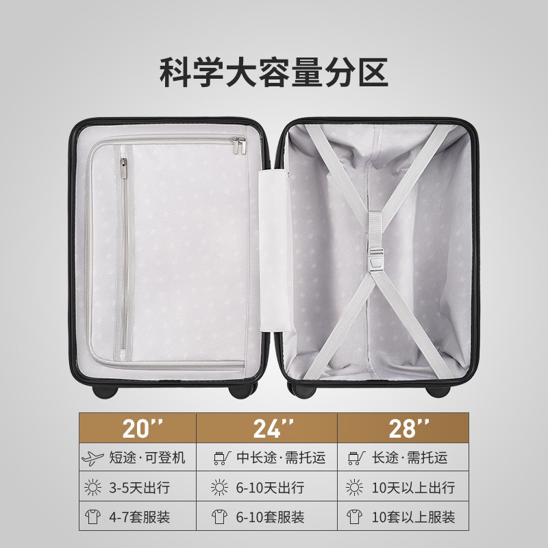 90分旅行箱,是小米生态链公司润米科技推出的一款旅行箱。这款拉杆箱商旅两用,采用100%德国拜耳Markolon聚碳酸酯PC材料,七道杠力学结构设计,加上三层复合抗压结构,不但轻便还耐磨,抗压性也非常好,表面纹理设计还可以有效抗划伤。加厚全铝合金拉杆,不但4档可调节,推拉也更舒适。一面是双层拉链袋设计,方便收纳,另一面采用X型束衣袋,可以固定行李。自带TSA海关锁,出行更加安全便捷。简洁设计日常出行一定是旅途上的好伙伴。