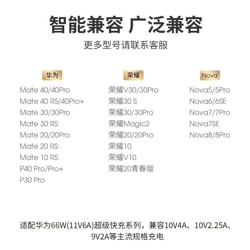 华为 CC790 原装6A数据线,采用美国线规23AWG芯线,支持6A大电流。双面导电铝箔屏蔽,提升抗干扰能力,数据传输更稳定。环保无卤TPE材料,绝缘性能好,安全可靠,持久耐用。适配华为66 W Max (11V6A) 超级快充系列,兼容10V4A,10V2.25A,9V2A等主流规格充电。