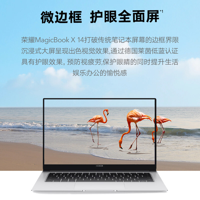 荣耀MagicBook X 15薄至16.9mm,重1.56kg,全新一体化的金属机身,提供全尺背光寸键盘,支持蓝牙5.0,支持2.4GHz和5GHz双频Wi-Fi,指纹识别和电源键二合一。配备15.6英寸屏幕,5.3mm微边框沉浸式全面屏,屏占比87%,分辨率1080P,德国莱茵低蓝光护眼认证,预防眼疲劳。