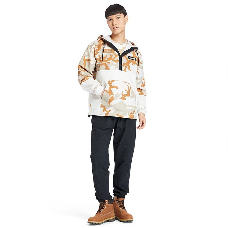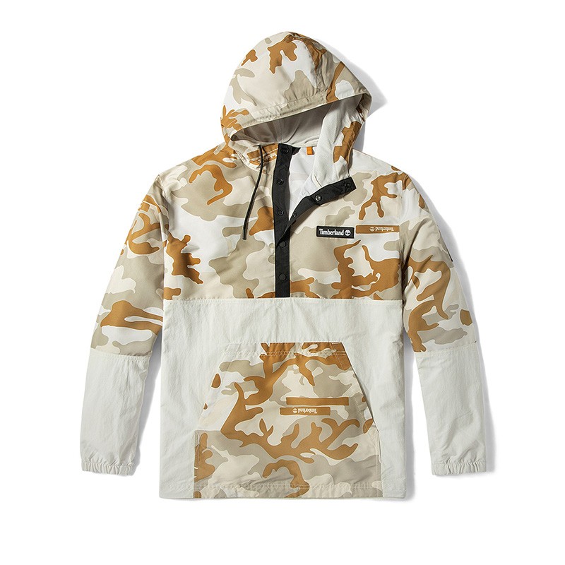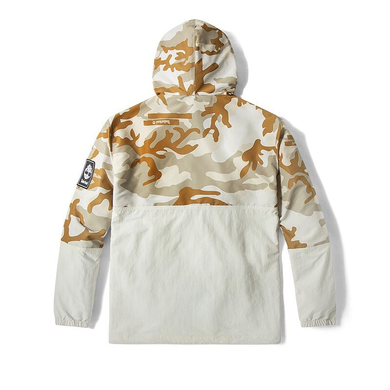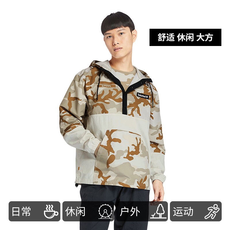 Timberland 添柏岚 男款户外连帽外套 A2FNU,采用迷彩拼接材质,颜色自然,拥有出色透气性,连帽抽绳设计,领口暗扣开合,袋鼠插手式口袋。
