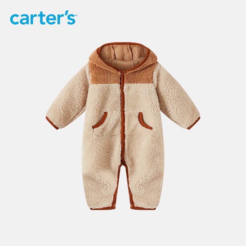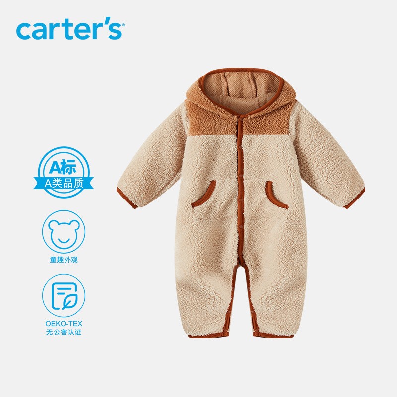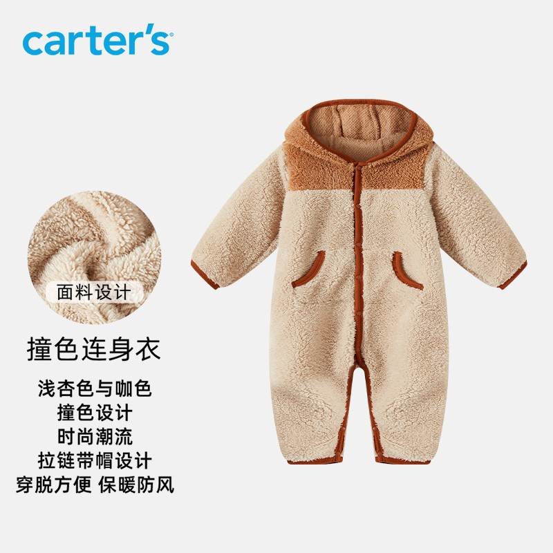 Carter's 孩特 婴儿连体衣,面层纯棉面料,棉纤维更加柔顺透气,光鲜耐磨,且越洗越柔软。夹层锁温仿丝棉,更轻的重量,更好的空气隔层,轻盈保暖,不臃肿更自如。