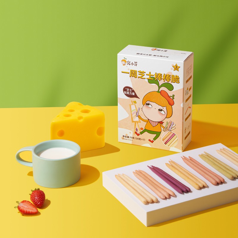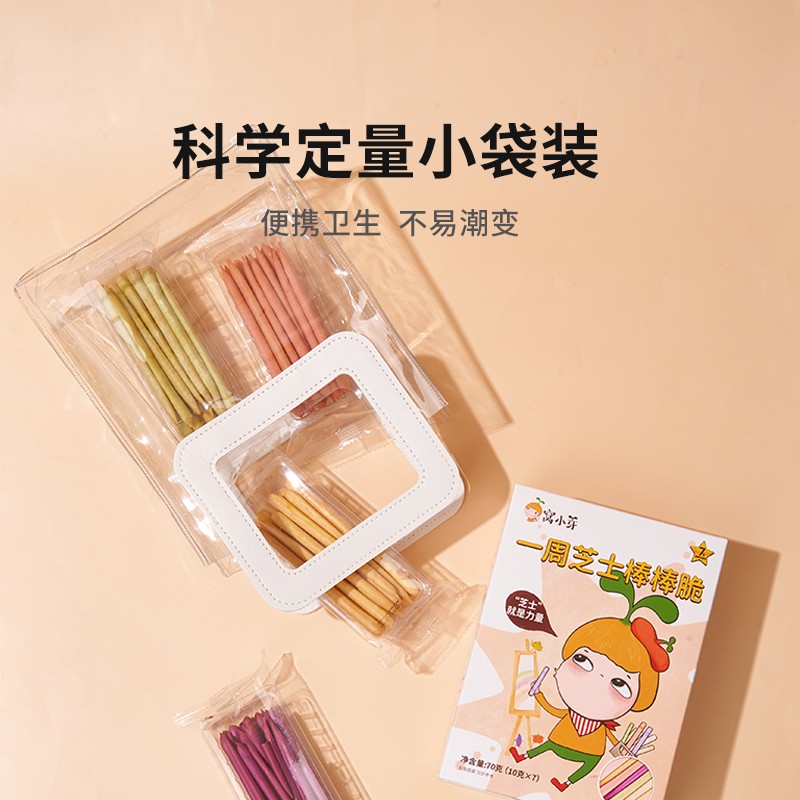 窝小芽 儿童芝士棒棒脆,进口原制奶酪,非油炸工艺,口感酥脆,7天不重样,甄选进口原材料,加入奶粉原制干酪,奶香味更足,非油炸非膨化。