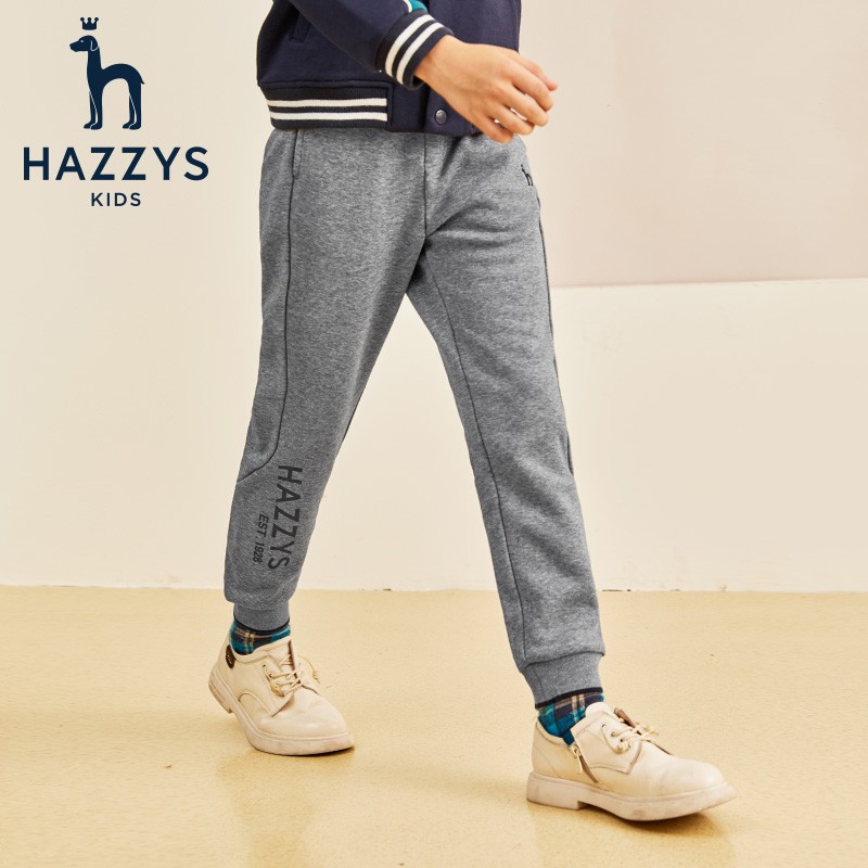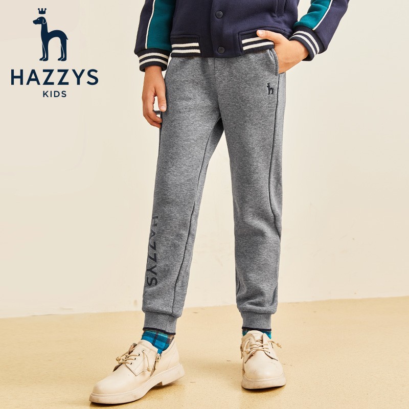 HAZZYS 哈吉斯 男童加绒长裤,舒适罗纹腰头弹力适中张弛有度;一字插兜便捷置物,兜口平整美观;醒目的字母平面时尚超帅,更具出街动感;撞色罗纹收口防风保暖,与腰头呼应统一和谐更美观。