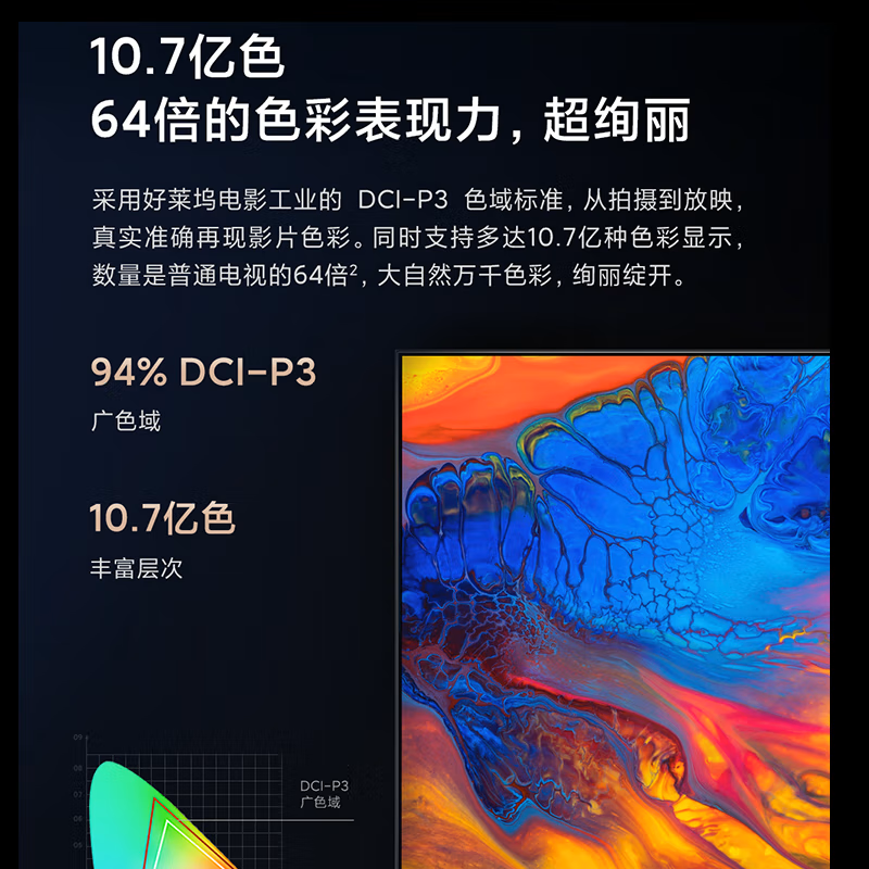 小米电视ES 2022款的55寸、65寸、75寸分别采用了32个、45个、60个背光分区,这种直下式背光配合硬件式控光分区是高端电视普遍采用的技术方式,能显著提升电视的黑场控光能力,提升画面的细节表现,让视觉观感更通透。屏幕峰值亮度更是达到了700nit,典型亮度提升至400nit,配合锐影光控技术可有效提升画面对比度,观看大光比的风光场景能明显感知画面层次,光影自然,明暗有度。