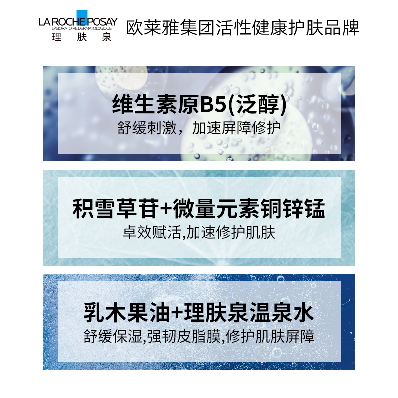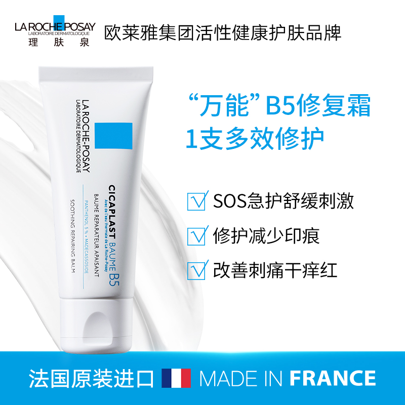 La Roche Posay 理肤泉是和雅漾、薇姿、依泉齐名的法国四大药妆品牌,近年来在国内知名度也快速上升,旗下清痘净肤系列口碑一向不错,安全可靠。这款LA ROCHE-POSAY 理肤泉 B5痘痕舒缓修复霜,含有维生素原B5、羟基积雪草苷等成分。5%羟基积雪草苷配方,有利于恢复敏感皮肤修复,加速角细胞分化,提升表皮组织的修护质量。抑制抗菌,避免外部脏污附着于伤口上,预防疤痕产生。