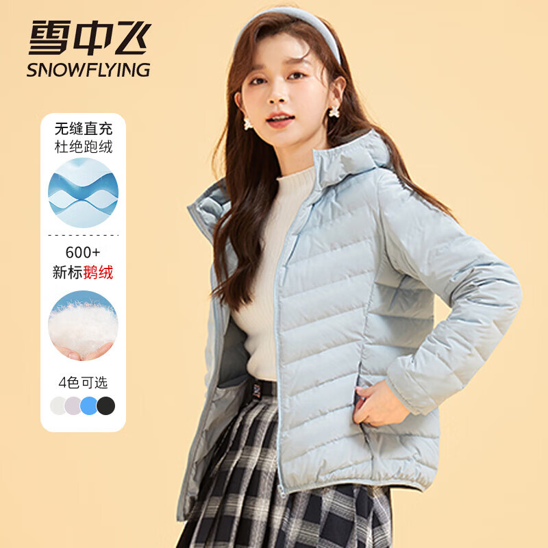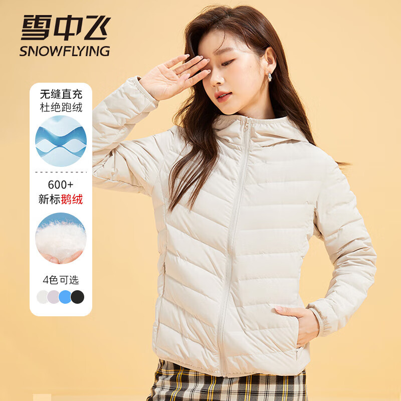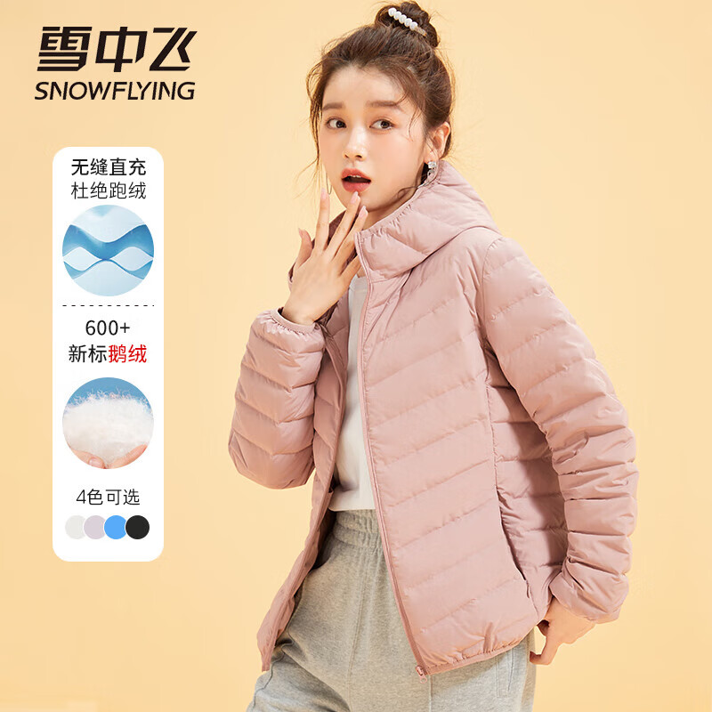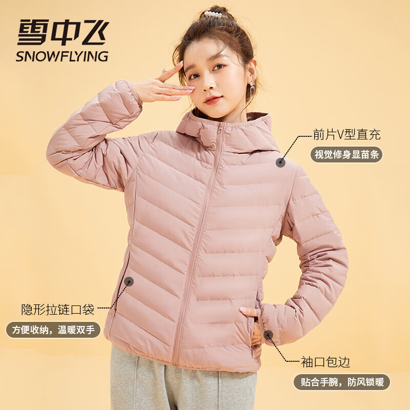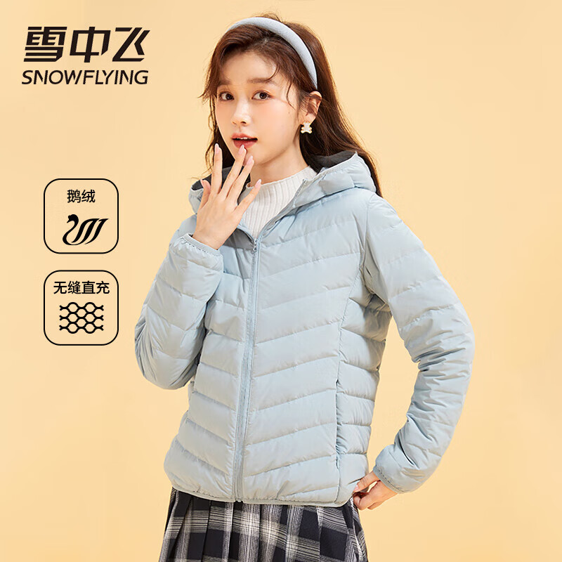 SNOWFLYING 雪中飞 男女款羽绒服 X201310548F 90白鹅绒填充,更蓬松保暖;定制弹力包边,无缝一体织面料;连帽设计,防风保暖更方便;多色可选。