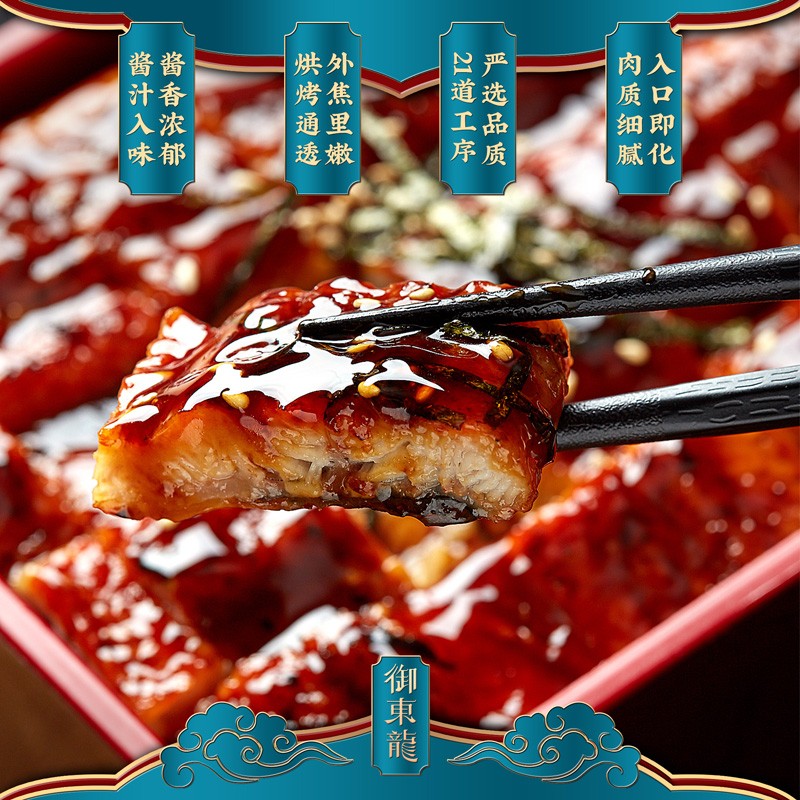 21道工序中途历经三大试味,48小时暂养,先烤再蒸,四道秘制酱油入味。鳗鱼的皮和肉都含有羊富的胶原蛋白,鳗鱼富含维生素A和维生素E。口感Q弹紧实。规格:335g