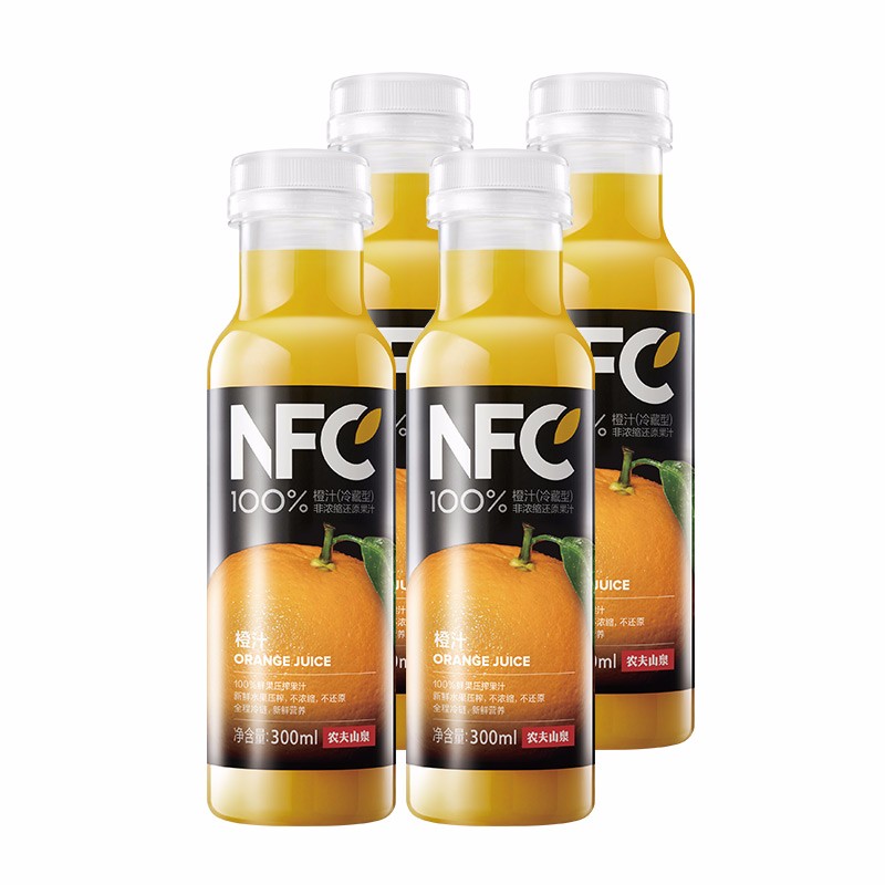 NFC是Not From Concentrate的英文缩写,中文为“非浓缩还原”。即新鲜水果清洗后压榨出果汁,经UHT瞬时杀菌后直接灌装,完全保留了水果原有的新鲜风味。这款农夫山泉 NFC果汁,每瓶约由三个半鲜橙榨取,营养健康。规格:300ml*4瓶。