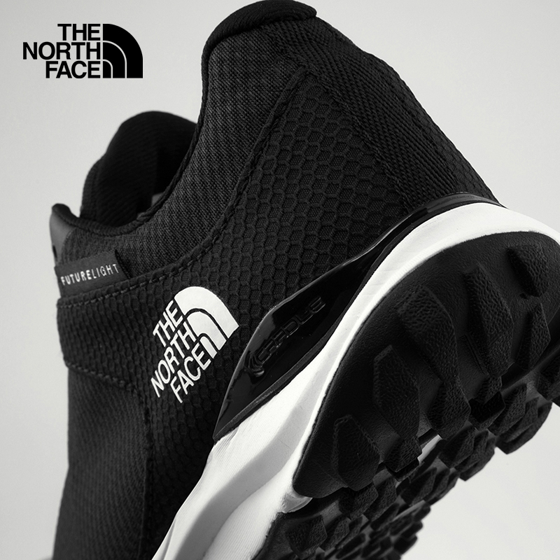 TheNorthFace自主研发的FUTURELIGHT防水科技,在织物的薄膜中添加了纳米级的孔隙,用以提供更为出色的防水透气性能,可满足各种运动的需求。与鞋面一体式设计的防沙鞋舌,舒适贴合脚背,还可有效避免泥沙碎石掉入鞋内。通过支撑后跟外援,以一种自然的方式吸收冲击力,为后跟着地提供正确定位。