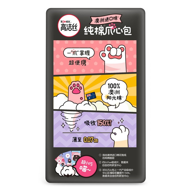 国产的纯棉卫生巾,透气不刺激,可爱的猫爪造型设计,迷你可爱的尺寸,方便携带,随时呵护你,让你时刻拥有好心情。采用心包丝柔软的材质,触感舒适,使用时不会出现侧漏的现象。