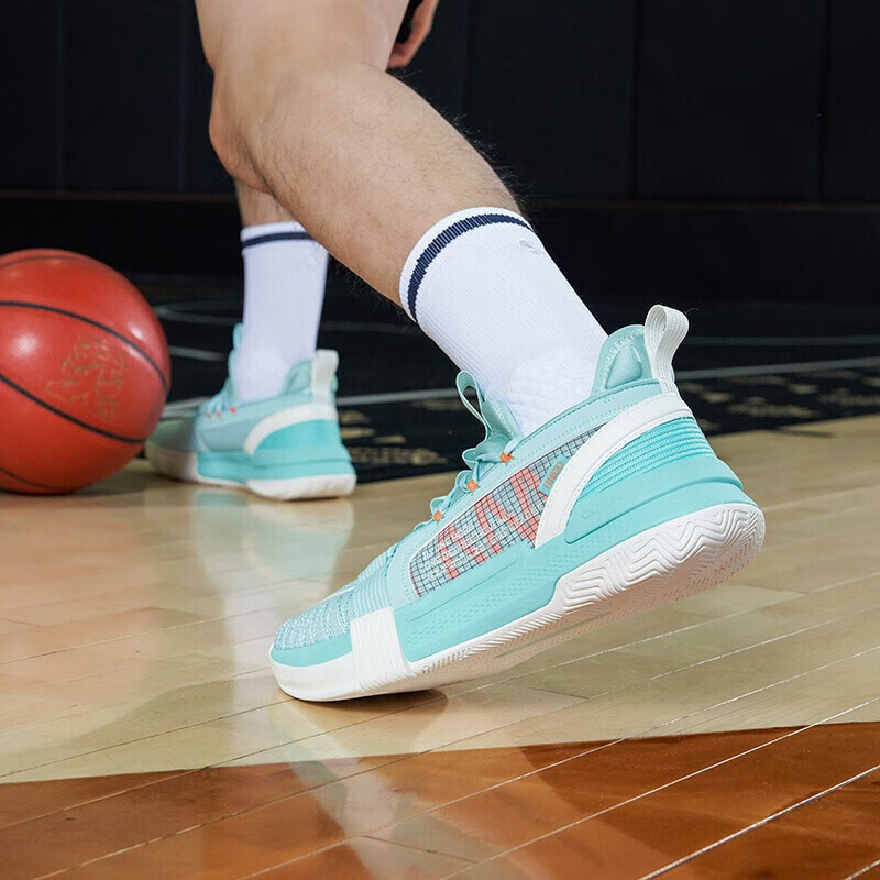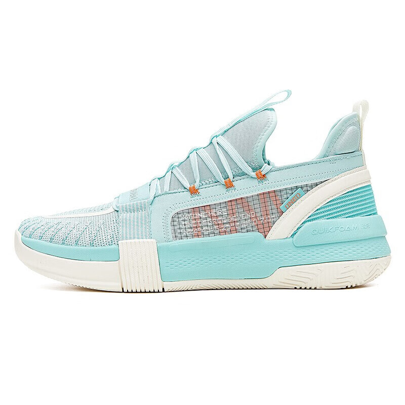 361燃战球鞋,鞋身大面积针织拼接,侧墙通透MONO纱,再保证稳定性的同时又具备强大的透气性,不再闷脚。中底采用QU!KFOAM Lite材质,赋予双足充实的缓震与柔韧的回弹性,灵敏出击,快速反应。侧前方上翻式橡胶结构强化鞋款防侧翻性能,减少崴脚风险。侧墙拉绳搭载一脚蹬领口,舒适包裹脚踝,助力球场迅捷出击。