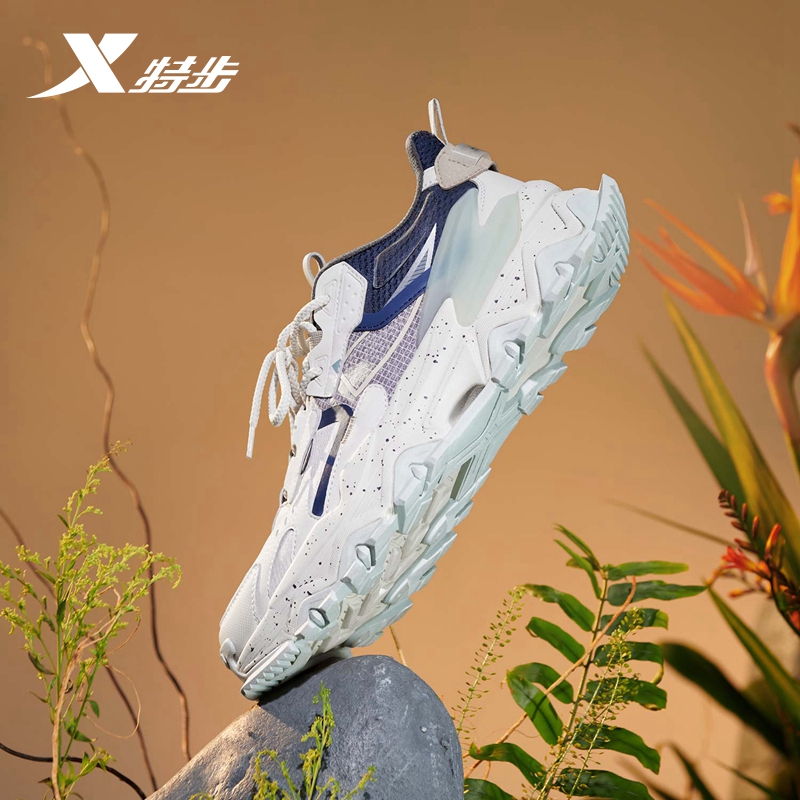 山系大底,型自山脉之绵延,以丹霞地貌+越野产品解构结构呈现奔山赴海之意。鞋款整体融入废弃旧底回收料减少环境让自然的变化再焕新生,自然山石纹理TPU在本草变化中潜藏定制式体验。