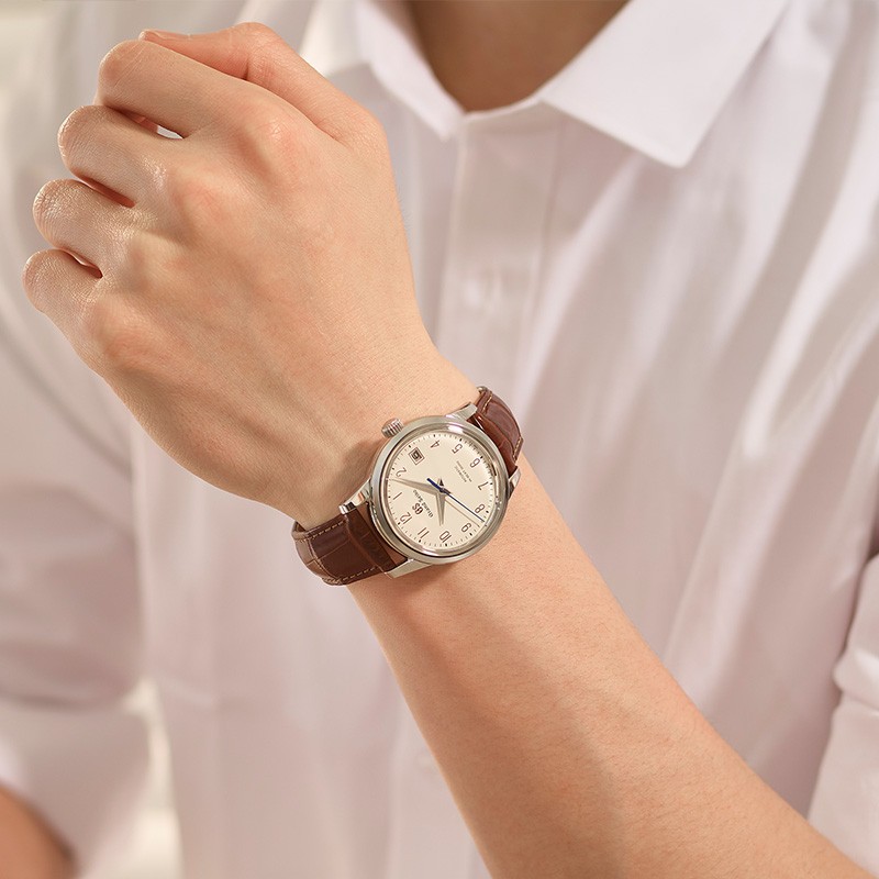 此款产品为Grand Seiko 冠蓝狮 男士自动机械表 SBGH213G,细致的银色表圈,象牙白经典表盘,棕色鳄鱼皮表带,处处流露出怀旧设计和复古风潮。阿拉伯数字时标与柔和盘面,搭配棕色鳄鱼皮表带,彰显绅士复古情怀,搭载9S85机械机芯,加持强劲动力。高性能机械机芯,采用更具实用性能的9S85系列标准。