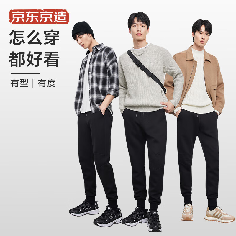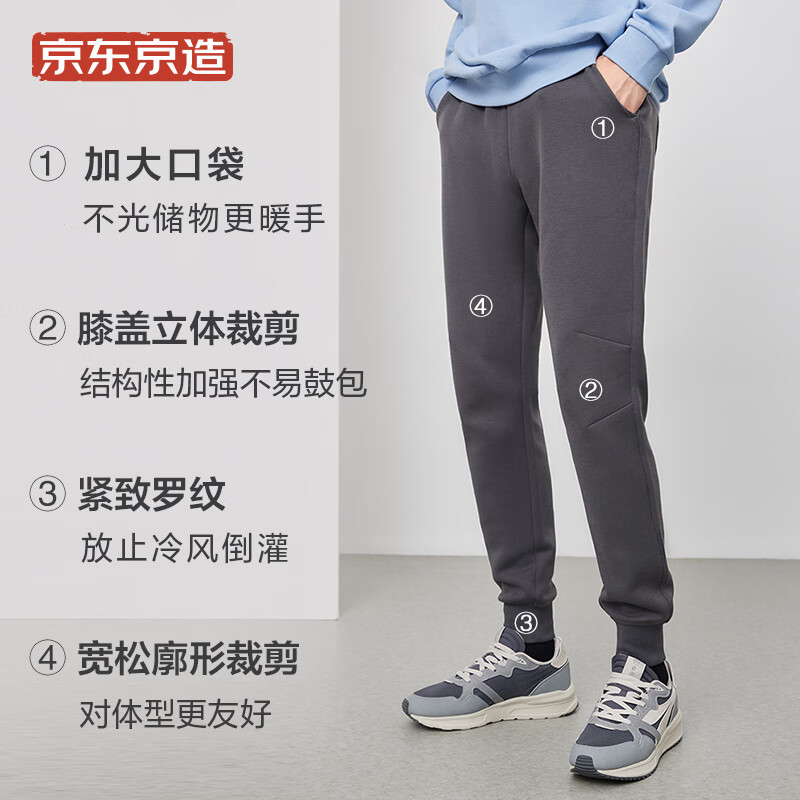 京东京造 男士休闲裤 6941592795810,加大口袋,不光储物更暖手,膝盖立体裁剪,结构性加强不易鼓包,紧致罗纹,放止冷风倒灌,宽松廓形裁剪,对体型更友好。
