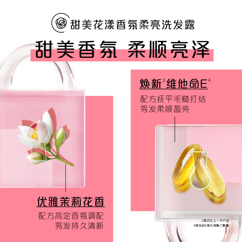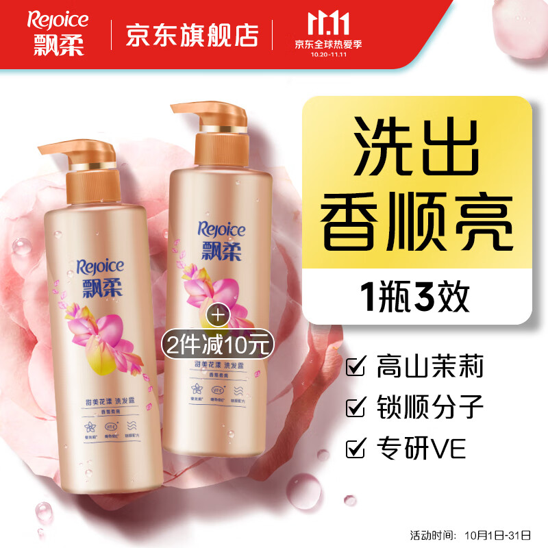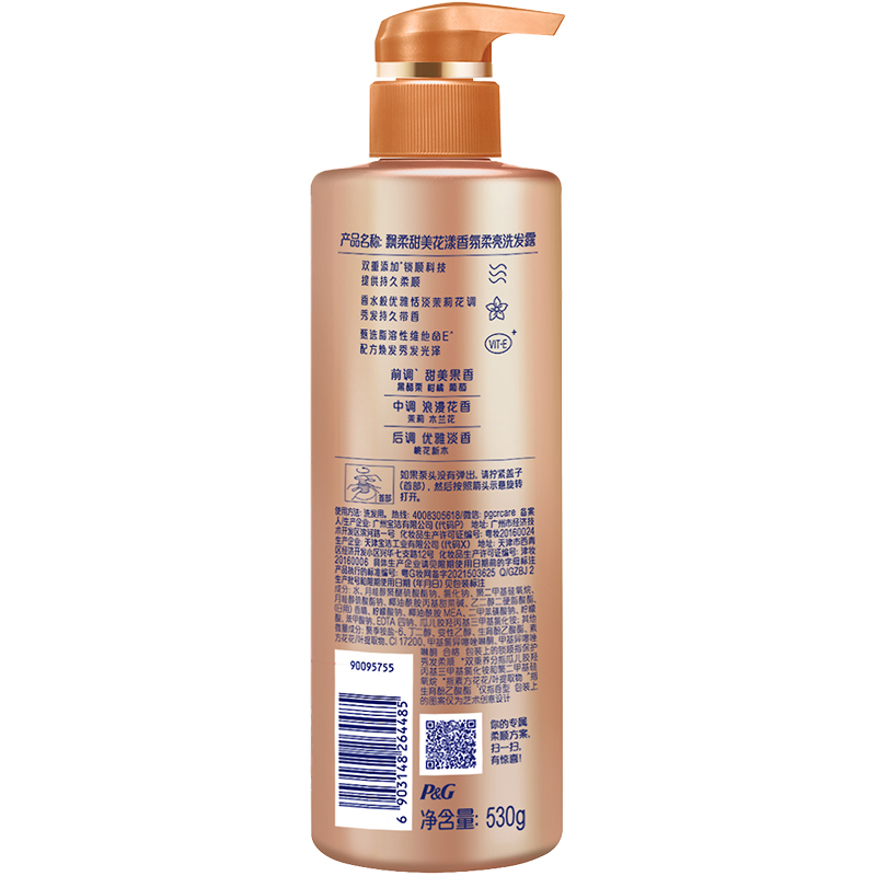 飘柔(Rejoice)推出的这款洗发露,以意大利香氛精油为主要成分,可改善头发暗哑无光、毛躁打结等问题,深入头皮滋养和呵护头皮,为头发补充养分和水分,修护受损发质,令发丝柔顺润泽易梳理。产品具有甜美花香,留香持久。按压泵头设计,方便使用。