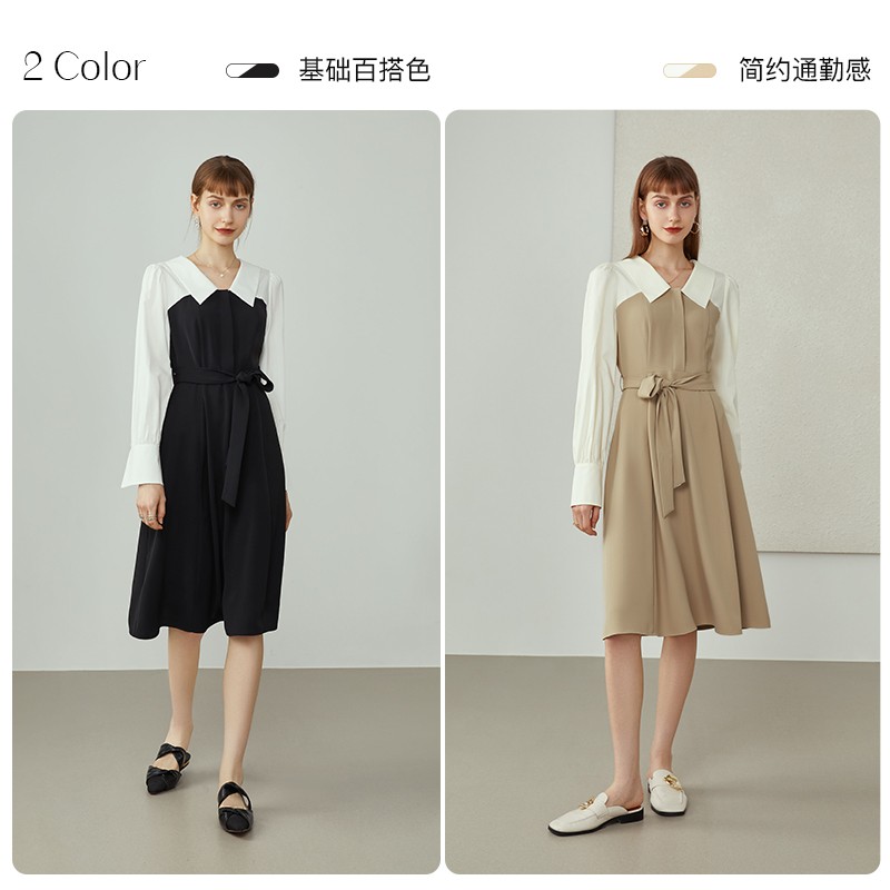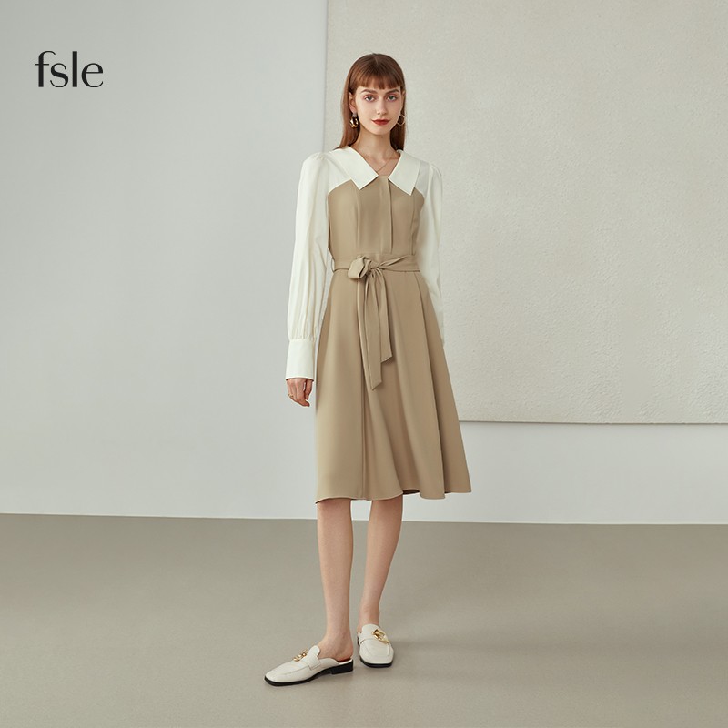 FANSILANEN 范思蓝恩 女士连衣裙 213290 衬衫式翻领与立体剪裁工艺,上身利落有型本布腰带设计,增加裙身层次感且收出腰身,显瘦之余还可以点缀整条裙子,气质拉满,再搭配上一双小单鞋即可干练出街。