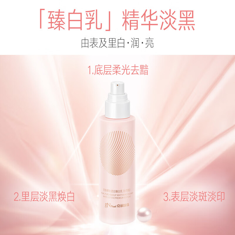 京润珍珠(gN pearl)推出的这款滋养乳液,添加珍珠发酵液、烟酰胺、当归和甘草等成分,可改善皮肤暗沉发黄、干燥粗糙等问题,帮助提亮肤色的同时,淡化斑点和痘印,使皮肤细嫩有光泽。质地水润不油腻,易于吸收。可搭配同系列产品使用。