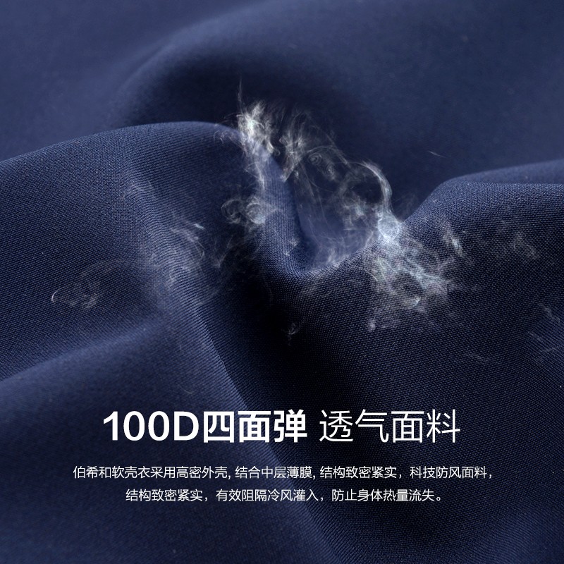 伯希和 男/女款软壳外套 ,采用科技防风面料,内里100D摇粒绒,舒适保暖,轻度防泼水设计,立体剪裁,修身物拘束。