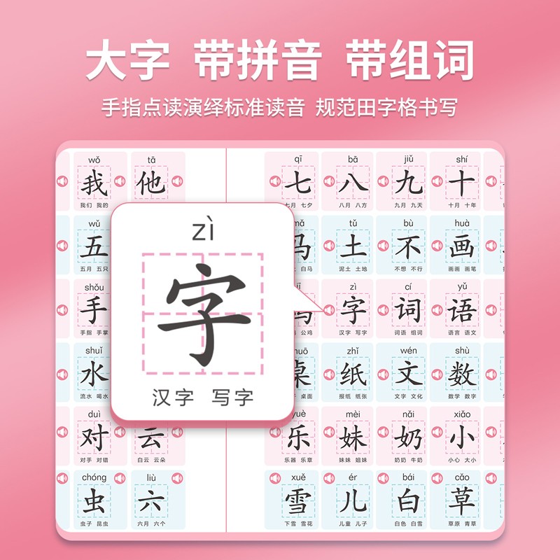 《会说话的趣味识字 1200字》是一本专为3-6岁识字敏感期的孩子量身打造的可以发声的识字书。它让孩子熟悉1200个汉字,全面掌握小学人教版1-3年级识字内容,满足日常学习、生活用语需求,从汉字认知延伸到词语认知,字词巧妙协奏,增强记忆。在本书中,我们将汉字与双面触控的点读技术相结合,提供给孩子一种全新的学习汉字的方法。书中采用标准普通话发音,还设置趣味测试、跟读等模式,让孩子在玩游戏和跟读过程中巩固所学的汉字。