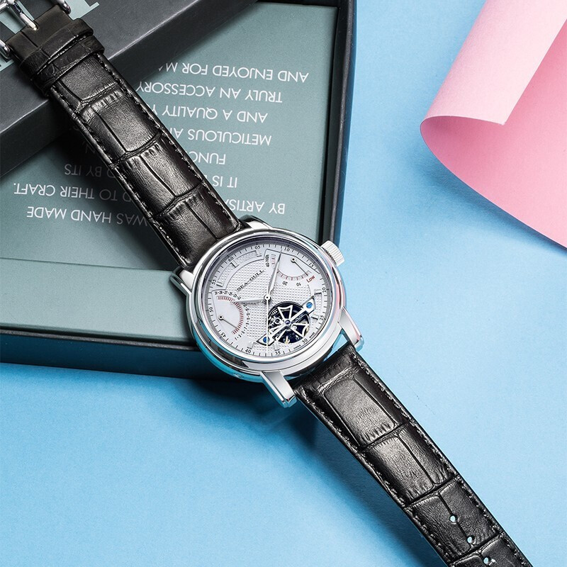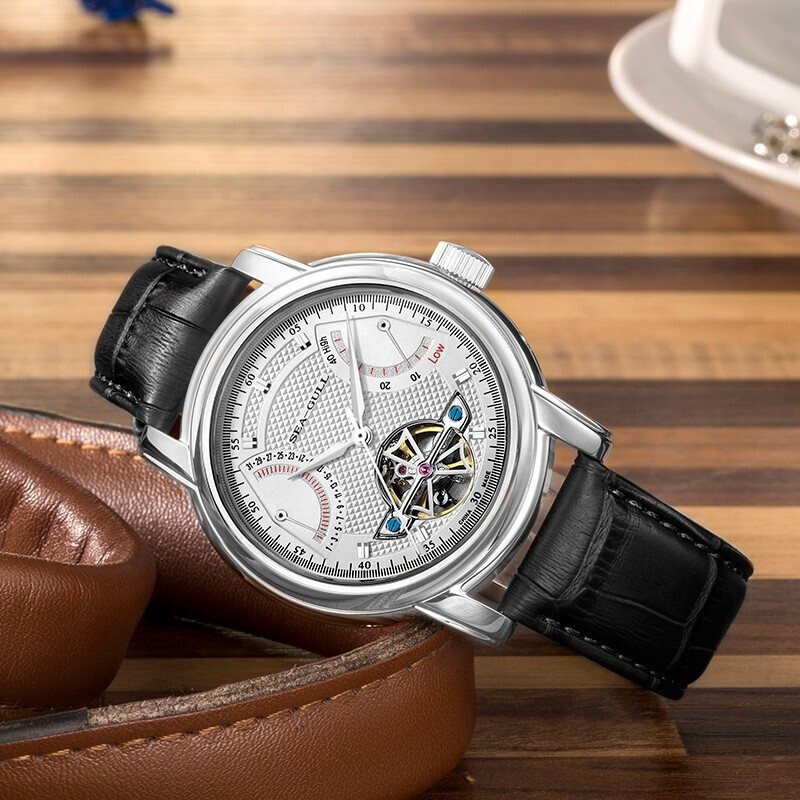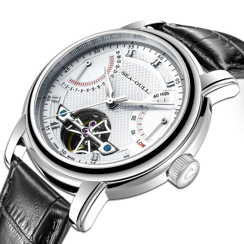 “海鸥”经典的飞轮系列代表作,煅烧蓝指针随着不同角度观看,呈现不同颜色,其乐无穷,多功能-日期,势能双飞返显示,让您不会忘记每一个重要的时刻,蓝宝石镜片,不易刮花,磨损,21600高摆频,精准稳定,非一般的性价比