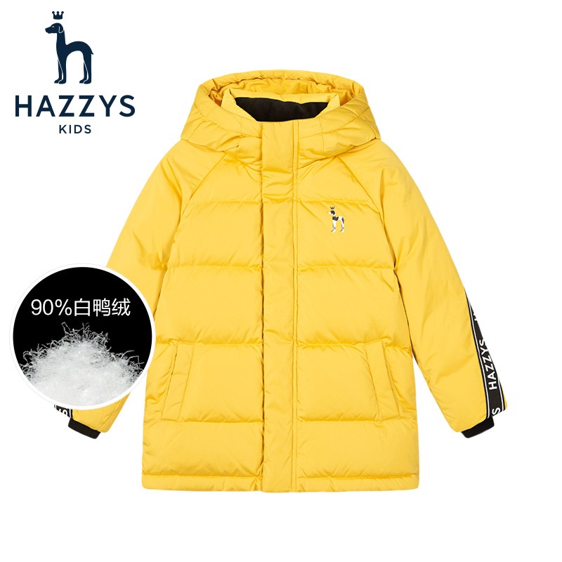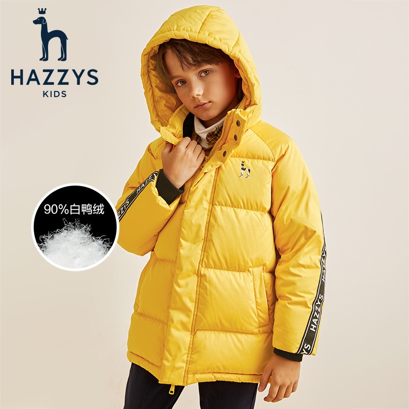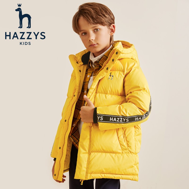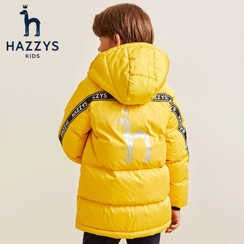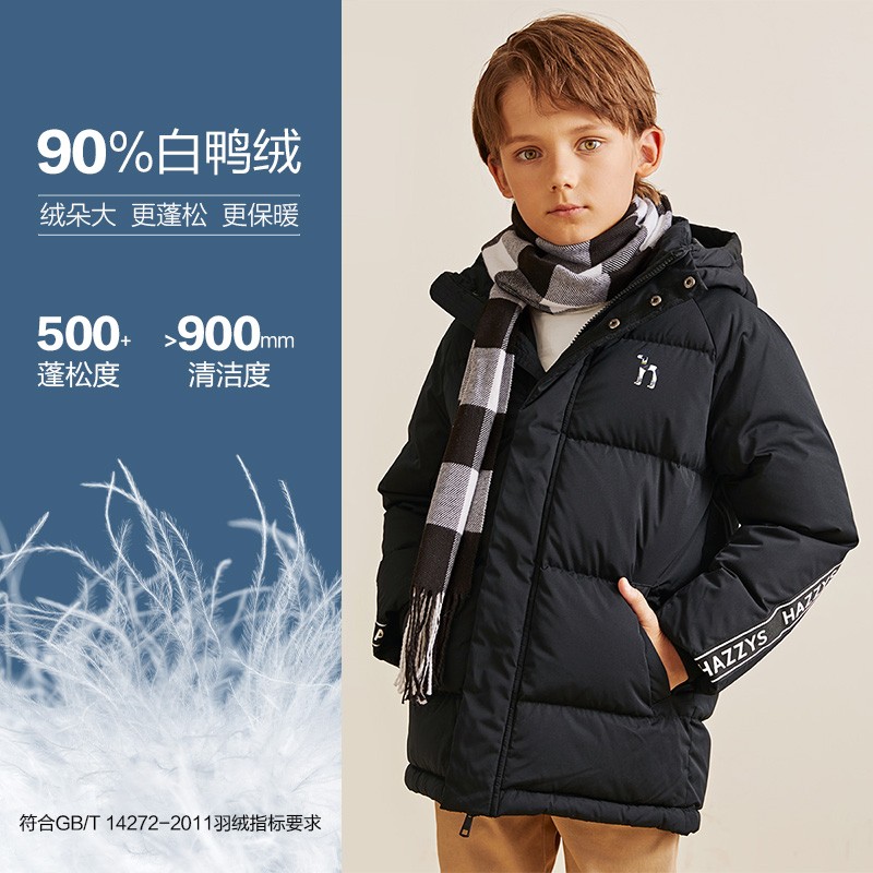 HAZZYS 哈吉斯 儿童中长款羽绒服,保暖充绒立领设计,内侧短绒更为柔软亲肤;休闲袖口简约时尚,内置弹力包腕锁温防风更保暖;按扣门襟平整美观,织带加固增强扣力经久耐用;后背反光印平面夜间出行更安心,同时展现品牌魅力;织带装饰时尚别致,更具个性潮流范儿;双向拉链设计,上下均可拉开,户外运动更加灵活。