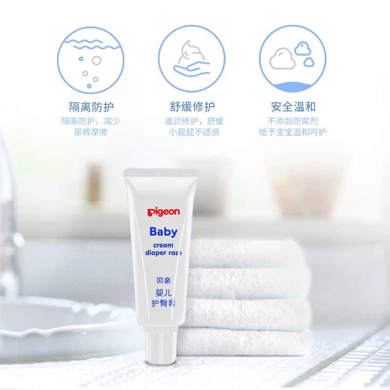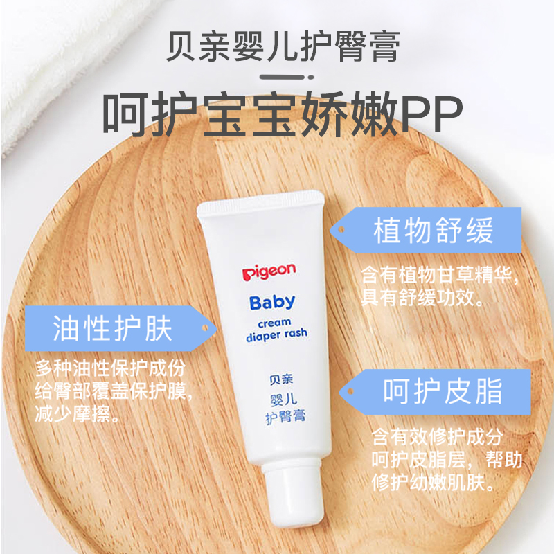 贝亲Pigeon是来自日本的知名母婴用品品牌。贝亲婴儿护臀膏采用油性成分、甘草精华成分和氧化锌。涂抹后可以减少宝宝皮肤与尿布的摩擦,阻隔便尿接触皮肤并防止有害菌入侵。天然甘草精华成分有效预防和舒缓因便尿刺激引起的皮肤发红和其他异常现象,每支35g。