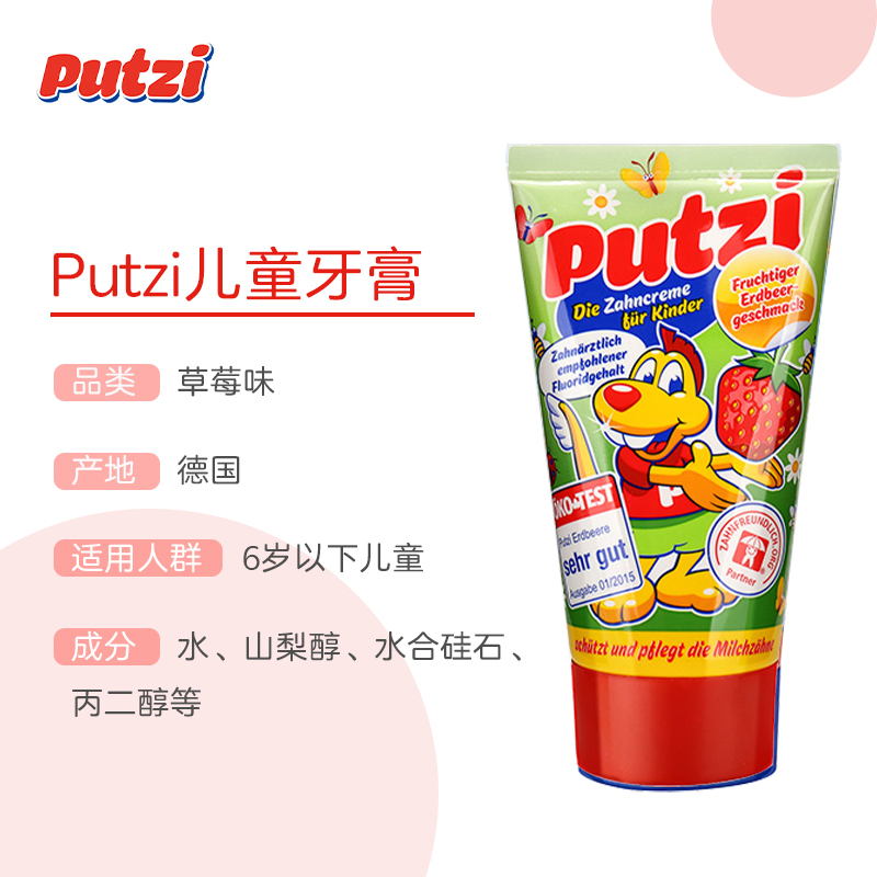 当前的位置: 首页 > 今日值得买 > putzi 德国原装进口婴幼儿牙膏 儿童牙膏 宝宝牙膏 0-6岁50ml 草莓牙膏