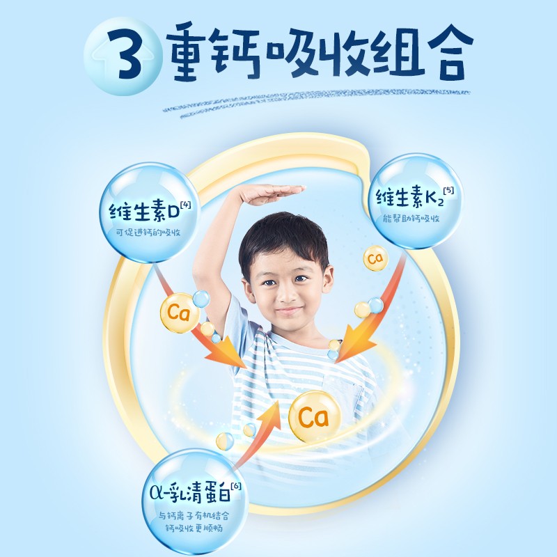 伊利是知名的国产奶粉企业,旗下的奶粉产品线比较丰富,有金领冠、金领冠珍护、金领冠睿护、金领冠菁护、沛能(原金装)、QQ星等系列,这款QQ星榛高系列儿童奶粉专为3岁以上儿童定制,选用自有牧场A2奶源,富含A2 β-酪蛋白,亲和人体好吸收,每100g添加4亿进口活性益生菌,维护肠道健康,促进消化吸收, 特别添加α-乳清蛋白, α-乳清蛋白的营养成分非常接近母乳并且含9种必需氨基酸及多种免疫活性物质,帮助宝宝提升自护力,添加DHA+AR,补充脑部营养,玉米黄质+叶黄素+维生素A,呵护心灵之窗,宝宝拥有明亮大眼睛。