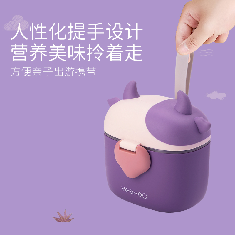 YeeHoO 英氏 婴儿便携奶粉盒 230g,密封储存,可100°高温消毒,粉、勺隔离、精准控量,便携提手设计,方便亲子出游携带。230g容量奶粉,可冲泡1380ML。