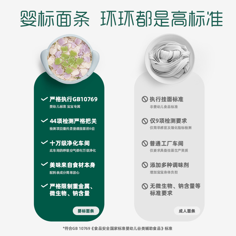 此款YEEHOO 英氏婴儿面条组合,锻炼宝宝咀嚼和吸吮,立体蝴蝶面进阶咀嚼和吞咽。强化钙铁锌,满足日常所需。果蔬肉搭配,丰富口味,均衡营养。不添加食盐,缤纷色彩取决于食材的原色,呵护宝宝幼嫩胃壁。精选阳光小麦,健康好消化。帮助宝宝启蒙认知,缤纷小动物形象,提升色彩、形状认知。