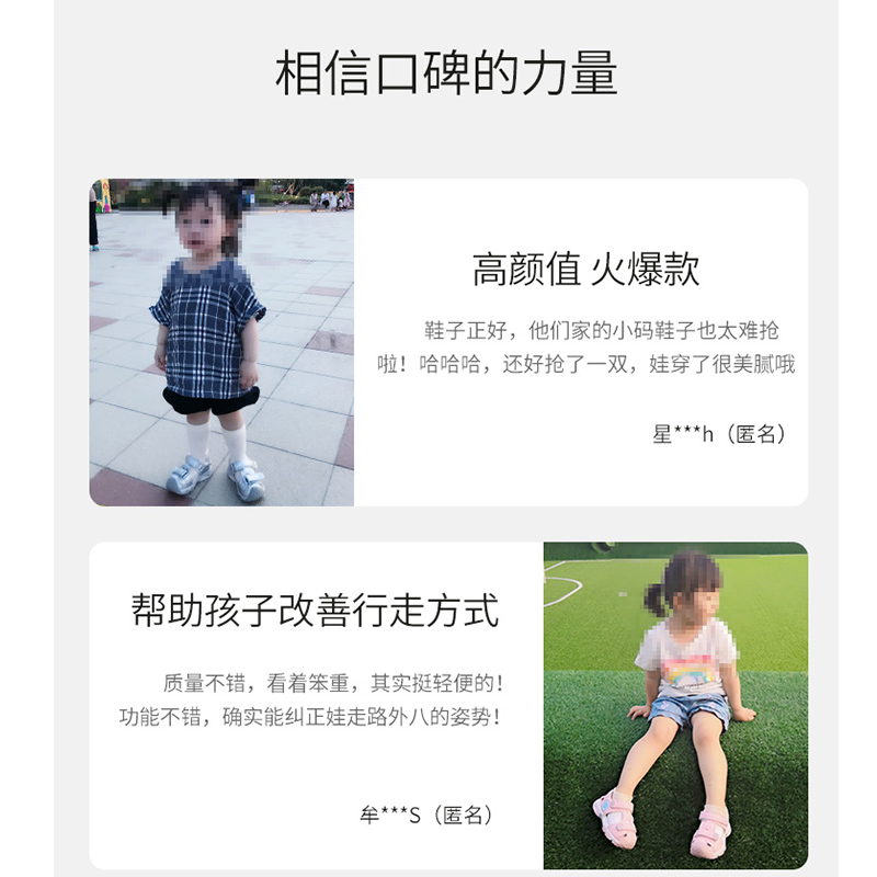 遵循足踝医学理念开发,健康保护力拉满,几十年坚持不懈,只为孩子走好每一步,后跟杯加硬稳固足跟,助力宝贝双腿笔直,足根骨处U形杯状补强加硬,更好地稳固后跟,提升步态稳定性~