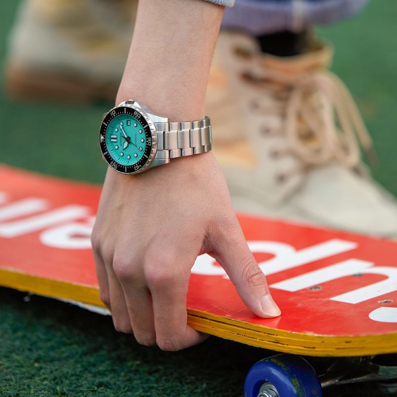 夜光显示,潮流无惧暗夜,时、分、秒针,字粒夜光,夜光效果图(夜光实际效果请以实物为准),夜光显示:时、分、秒针、字粒(3点除外)、表壳功能圈0点位置夜光,动感指针与夜光刻度设计,即使夜间滑行,时间依旧清晰可见。酷是一种态度,色彩曲你做主。