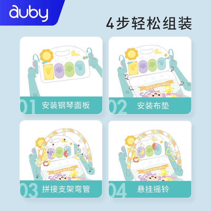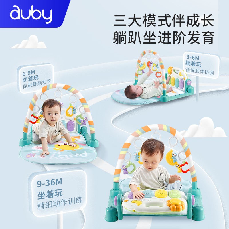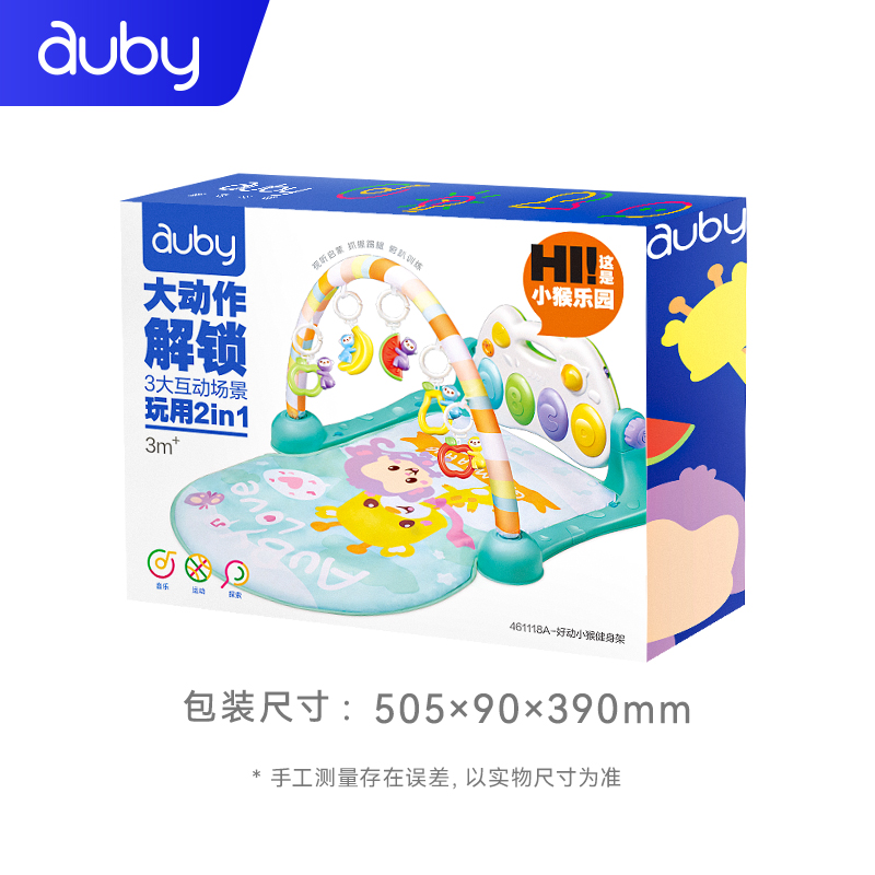 AUBY 澳贝 461118B 好动小猴脚踏钢琴健身架,健身玩乐两不误,感官四肢齐训练;宝宝的音乐健身房;躺着玩、坐着玩、趴着玩,三大玩法,让宝宝爱上运动;多功能钢琴面板,从小培养乐感。