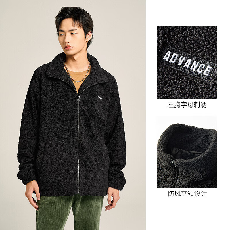这款A21 F413134001-1 男装立领加绒夹克,采用超细羊羔绒材质,厚实保暖,挺括有型,宽松立领设计,简约纯色,休闲百搭,袖口束口设计,防止冷风灌入,保暖舒适。