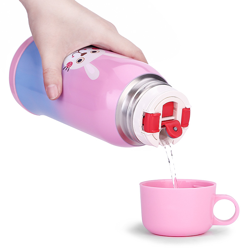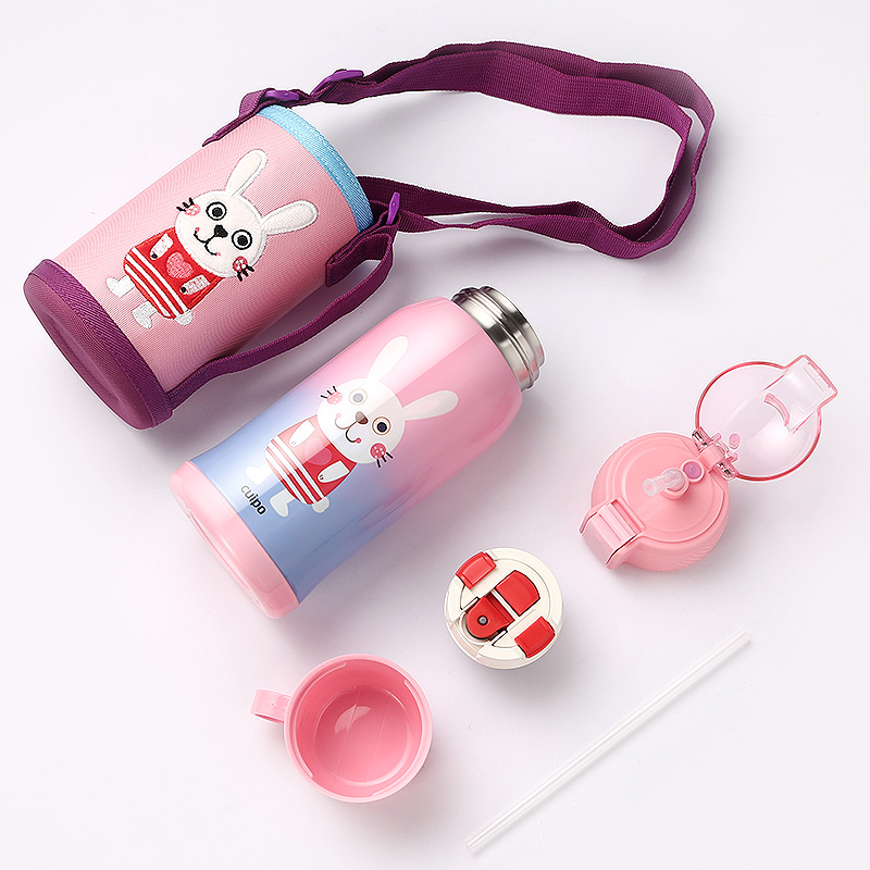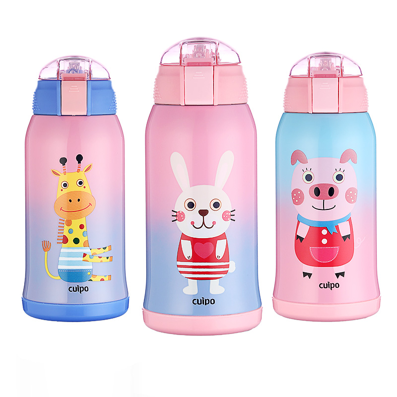 cuipo这款儿童吸管保温杯,内胆选用316不锈钢材质,耐高温腐蚀,易于清洗,保温效果好,有效保温保冷长达24小时。配备吸管式、倒水式两种杯盖,满足不同阶段的使用需求。吸管式杯盖设有锁扣,可防止误触打开瓶盖;硅胶吸管,弹力强,耐咬耐磨。杯身颜色明亮并配以卡通图案点缀,活泼可爱。搭配萌趣杯套,便于携带,保护杯身不受磕碰。