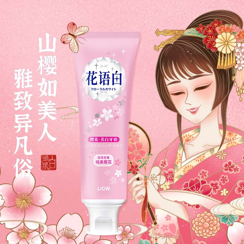 狮王是日本最大的日用消费品公司之一,业务涉及多个领域,产品质优价廉,被全球多个国家的消费者所喜爱。这款LION 狮王 花语 白樱花牙膏,添加离子亮白配方,可淡化牙面外源性染色;泡沫绵密带来舒适的使用感受;淡雅樱花香味,清新宜人;膏体中含有粉白颗粒,由内而外散发少女心~