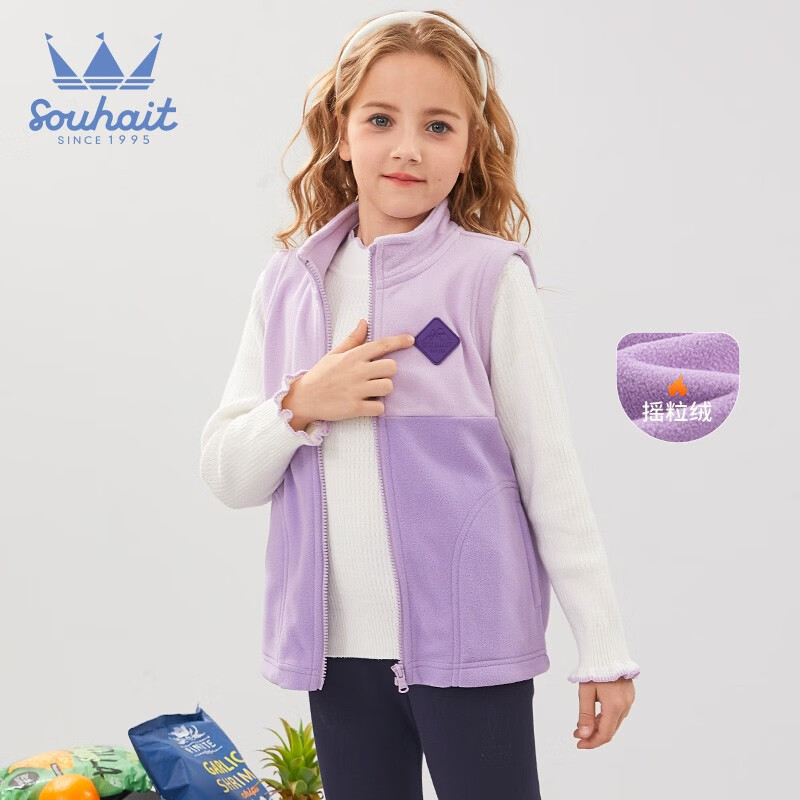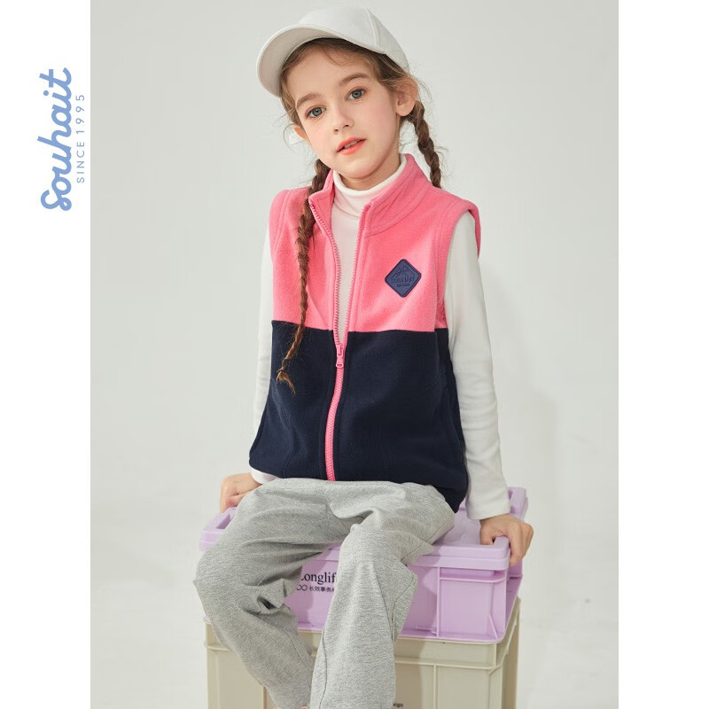 Souhait 水孩儿 女童休闲马甲外套,柔糯舒适,柔软温和,御寒保暖。立领设计,温暖脖颈阻挡冷风。胛高适中,活动便捷不受限。