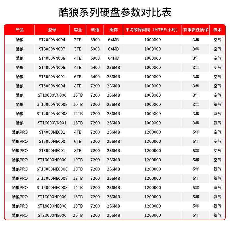 ST8000VN004 隶属于希捷酷狼系列,酷狼系列是希捷针对 NAS 应用需求专门推出的机械硬盘产品,这个系列的硬盘具备 100 万小时的故障时间以及 180TB/年的数据负载量,针对 NAS 的应用需求,希捷带来了 AgileArray 智能阵列技术,能够在多盘位环境中实现双平面平衡和 RAID 优化,在 4TB 及以上的型号中,希捷酷狼系列还应用了旋转震动传感器,通过预警方式进一步保护硬盘的数据安全。