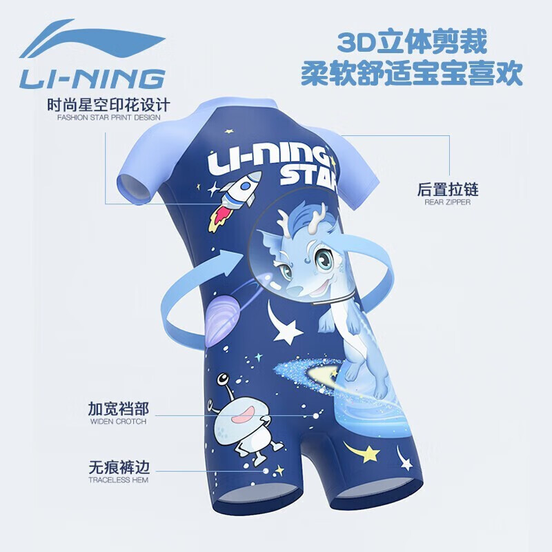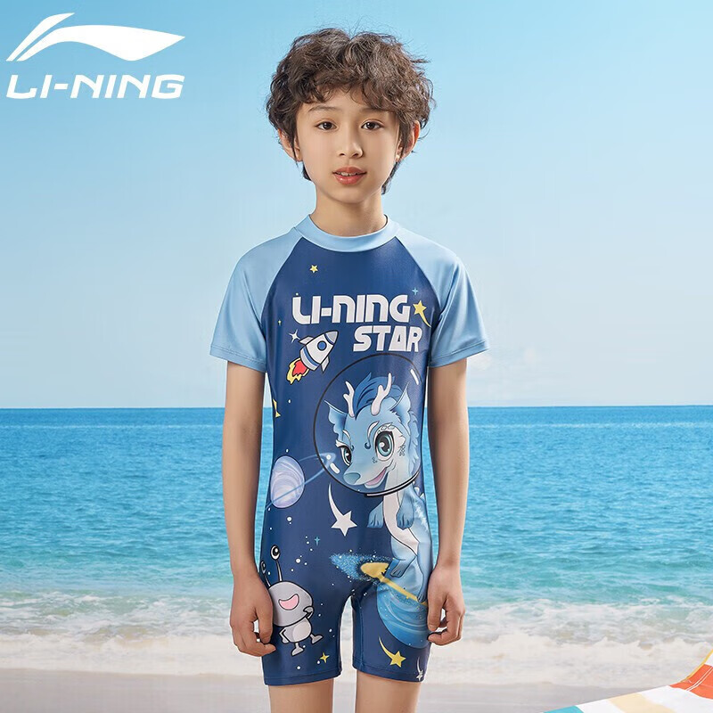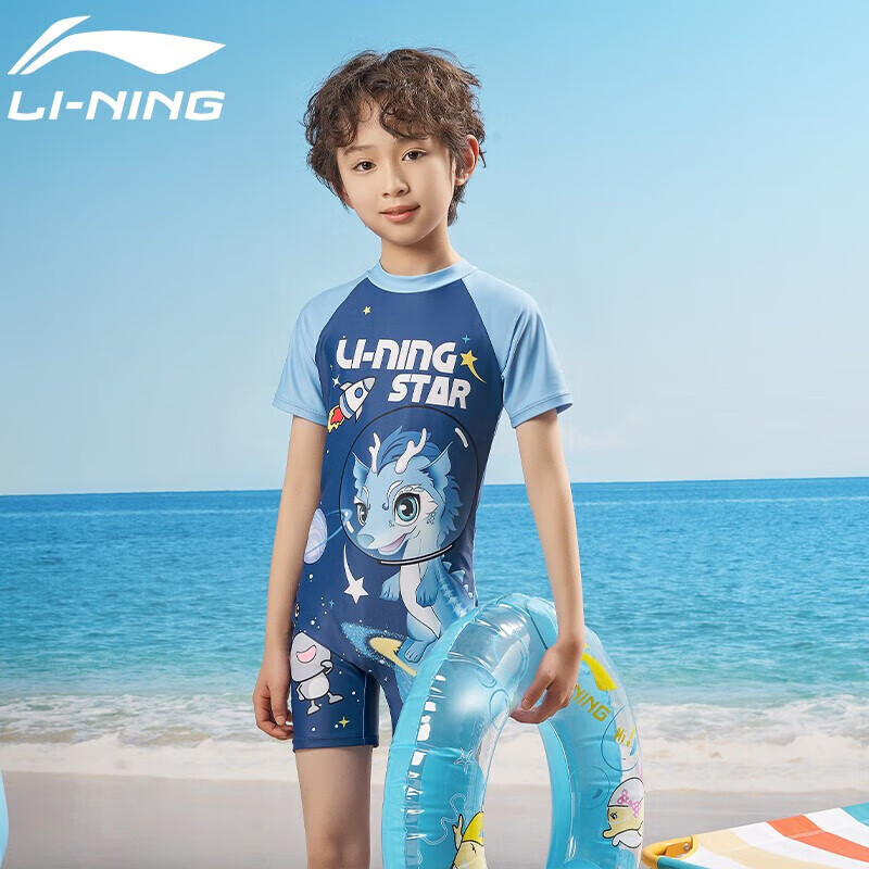 LI-NING 李宁的这款儿童连体泳衣,面料材质采用耐用度高的锦纶/尼龙,抗氯面料~