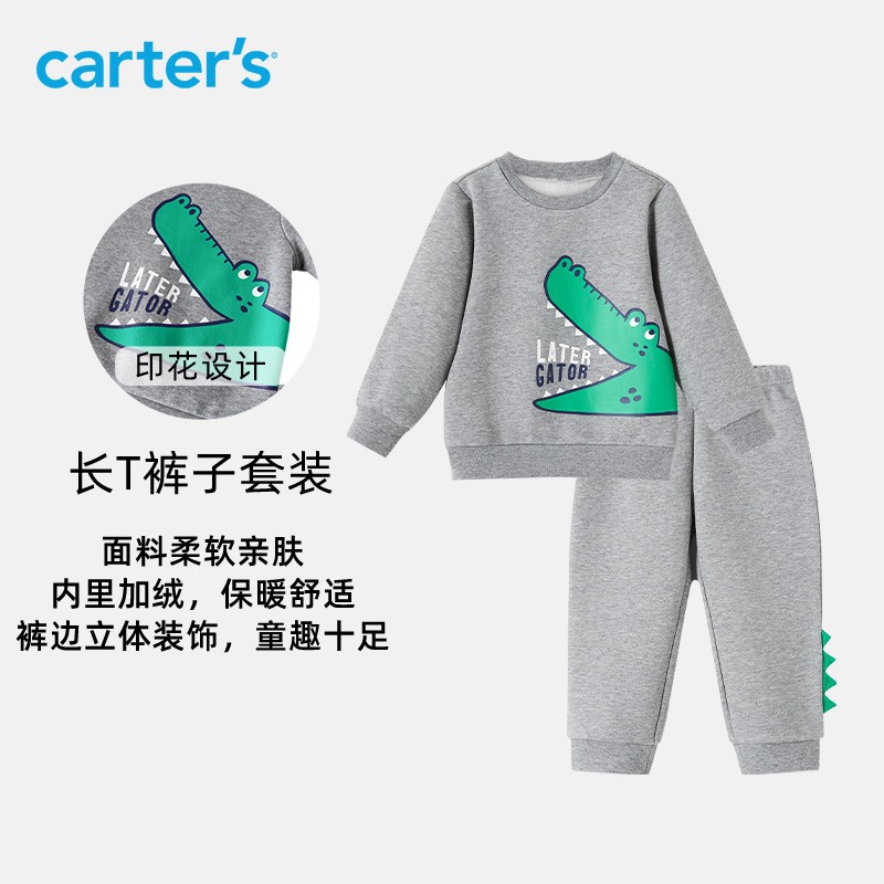 当前的位置: 首页 > 今日值得买 > carters 儿童套装冬季男童卡通印花加绒卫衣长裤运动套装 灰色鳄鱼1M816910 3T(建议身高100cm)