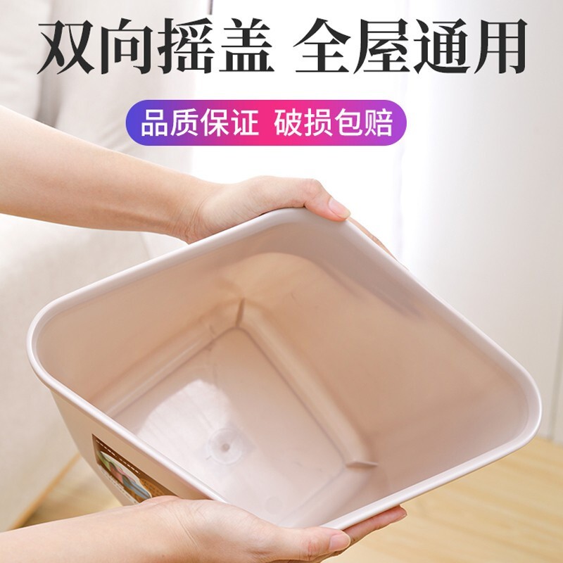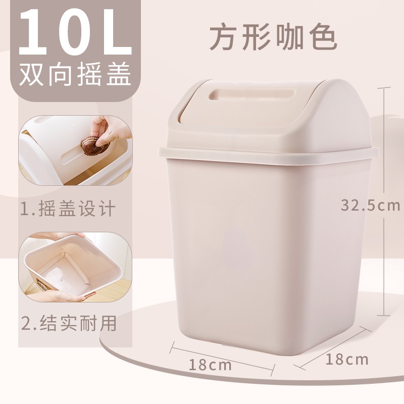 摇盖设计,时尚美观,再也不用担心盖子会坏了; 有盖锁异味,适合厨房卫生间,有盖异味不外漏。 采用环保PP材质,承重强悍,韧性好,健康安全; 窄型设计,卫生间窄缝生存不占空间。规格:18*18*32.5cm