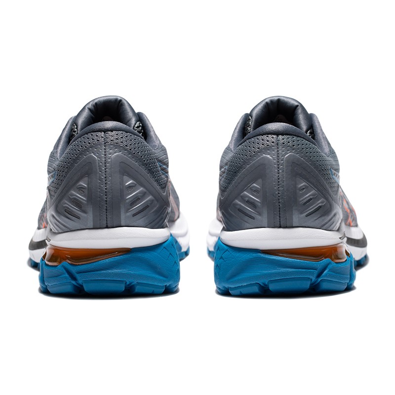 GEL缓震胶鞋后跟可视GEL缓震胶,为足跟提供更加充分的冲击防护。FLYTEFOAM中底材质,更轻量、更坚韧,脚感更为柔软稳固。无缝线网布鞋面,贴合脚型,提供良好的包裹性和透气性。TRUSSTIC中足稳定片,为运动时容易扭动的中足部提高刚性,增强脚部的安定性。上部采用凹凸不平的构造设计,在抑制脚后跟倾斜的同时,分散了着地时地面对脚部的冲击力。