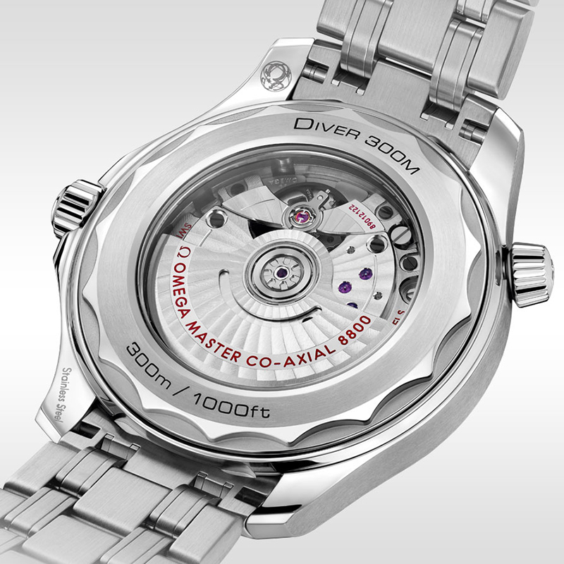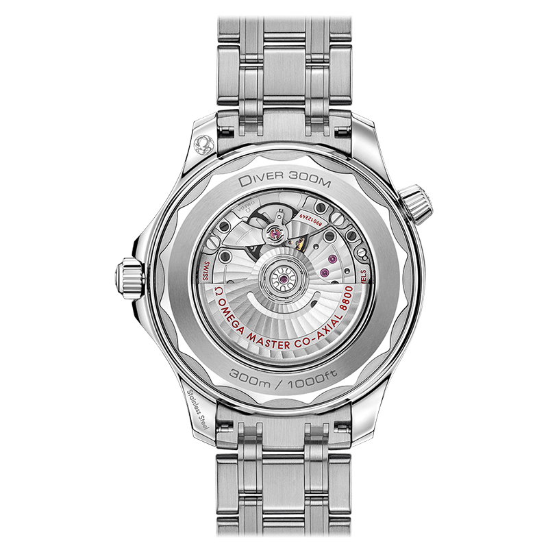 欧米茄海马系列300米潜水表自1993年问世便开启了传奇的篇章。如今,这一前沿风尚腕表系列秉承辉煌的海洋传奇,将欧米茄技术创业新与设计理念相结合,呈现新品力作。这款腕表采用精钢打造而成,表圈采用蓝色陶瓷,饰以白色珐琅潜水刻度。表盘亦以抛光蓝色陶瓷制成,饰以激光镌刻波纹图案。欧米茄搭载欧米茄8800至臻天文台机芯,具备出色的精准度、防磁性以及整体性能。10点钟刻度处的圆锥形排氦气阀门,采用欧米茄专利技术。强力夜光涂层加上单向旋转外圈,300米防水性能,满足潜水所需的一切。