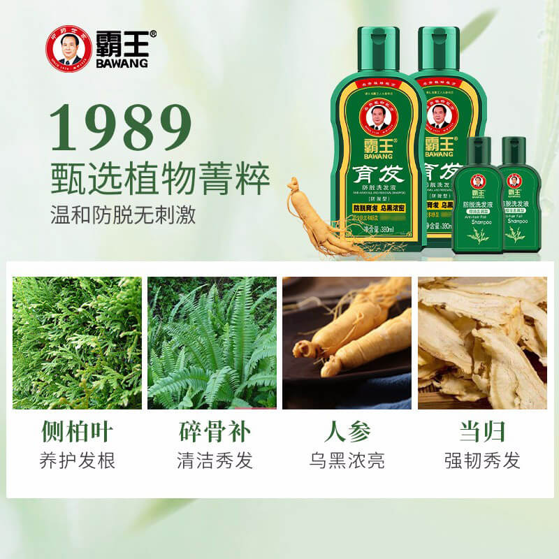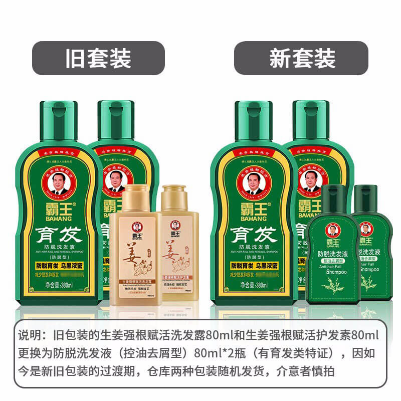 这款霸王防脱洗发水套装可以改善油质头皮环境,预防脱发,甘草侧柏叶女贞子纯植物配方,控油去屑,增发密发,搭配首乌固发,控油滋养,植萃防脱。