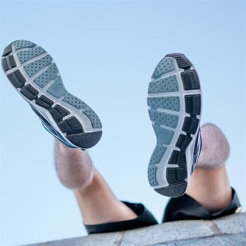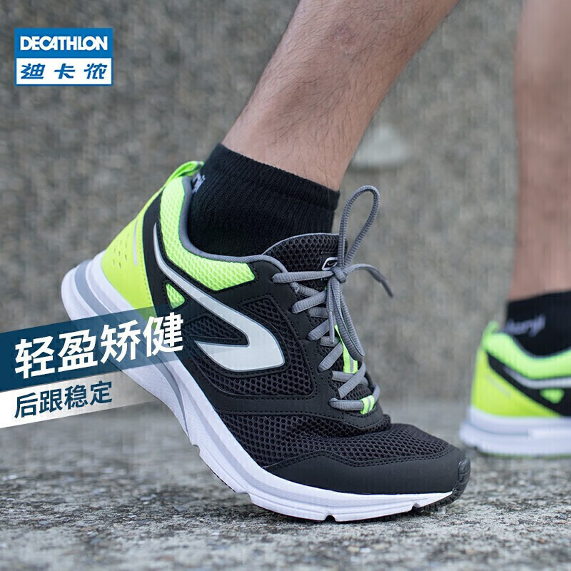 DECATHLON 迪卡侬 RUNS 男款透气马拉松跑鞋 2945198 ,EVA中底+CS缓震技术,提供舒适的缓震体验。43码的鞋单只约重245克轻量如翼,运动自如。鞋面3D透气网眼设计,循环透气不闷汗,脚部自由呼吸。鞋底重力引导线,保证跑步时中心点在适合轨迹上。