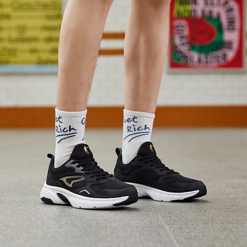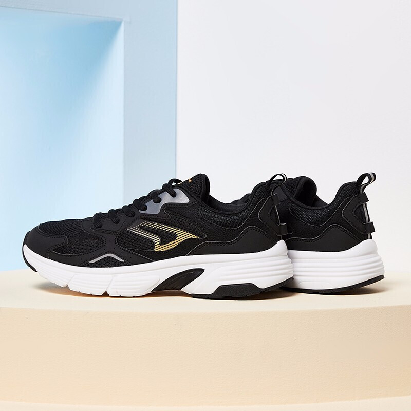 迎合复古风潮,重磅打造实穿经典款跑鞋,黑金大气配色,拒绝死板,百搭有格调,跑出新意,随心畅跑,开启个性征途。轻透网面设计,透性十足中腰热切设计融入舒适包裹,时尚经典简约。中底由高弹EVA材质,打造轻质柔软,减震回弹外底耐磨橡胶材质抓地力十足,随心畅跑。