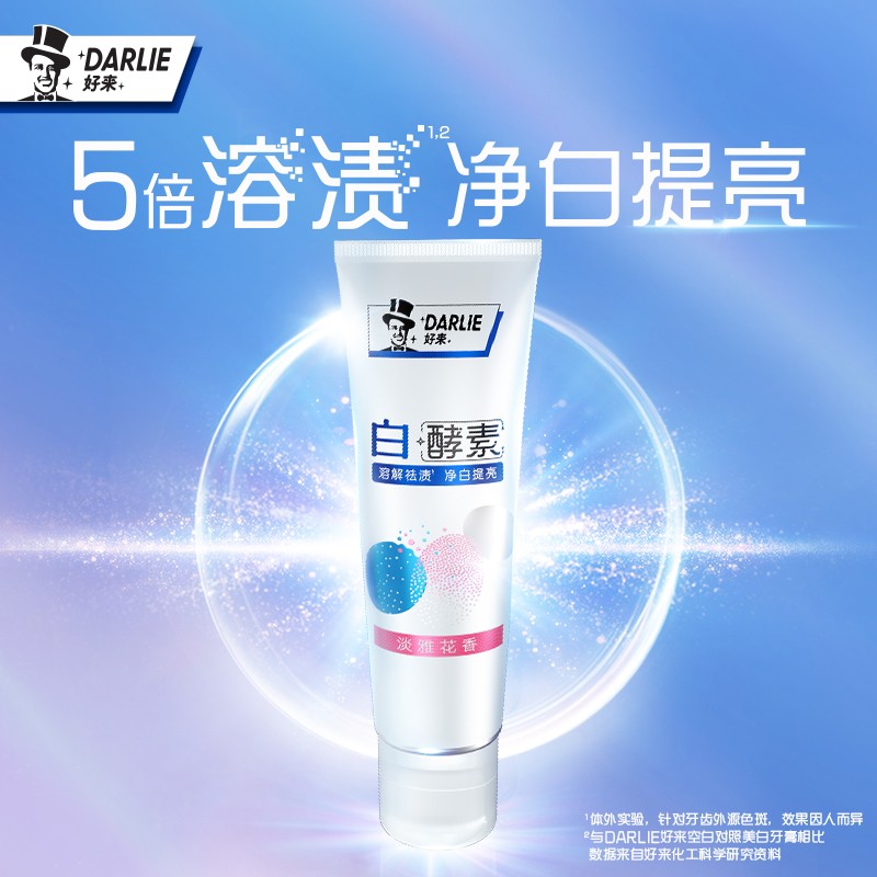 黑人(DARLIE)推出的这款牙膏,添加木瓜蛋白酶和葡聚糖酶等成分,帮助清洁牙齿和口腔表面污渍的同时,深层溶解多种色素和祛除顽固牙渍,提亮牙齿,呵护牙釉质,令牙齿洁净清爽。带有淡雅花香,使用后可清新口气。采用翻盖设计,使用方便。