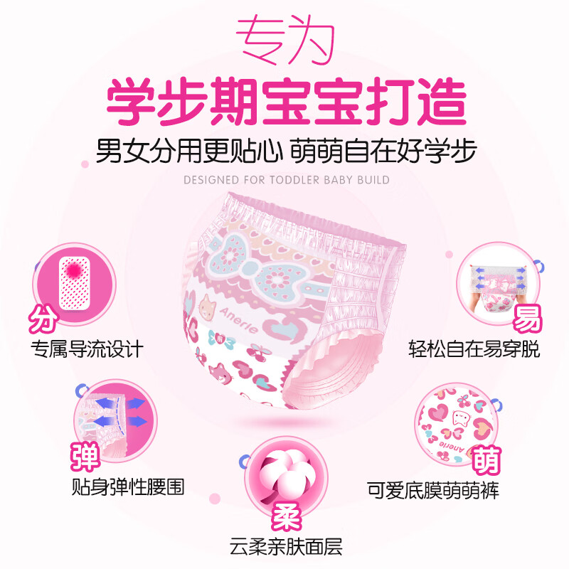 安尔乐Anerla是国内较为知名的卫生巾和婴儿纸尿裤品牌Anerle 安儿乐 扭扭弹力裤,以无纺布、高分子吸收树脂和PE膜的等为主要原料,具有超强吸收芯体,透气外表层,弹性腰围,松紧合身,易拉侧边,穿脱方便,这款为女用,规格XL19片。
