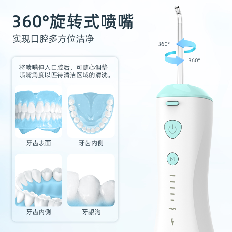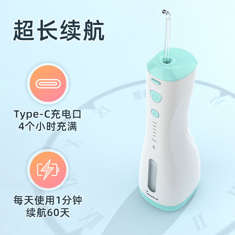 冲牙器的脉冲水流可以清洁刷毛触达不到的齿缝深处 或蛀牙导致的空腔。贴心为口腔不同情况设计专属模式 并自带模式记忆功能,记录您的使用习惯。